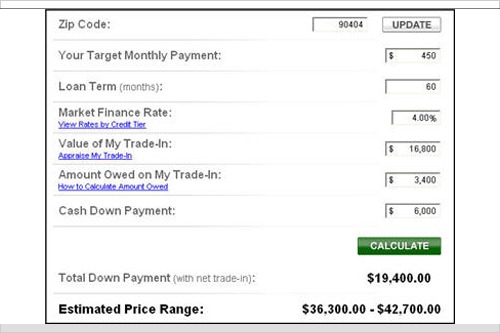 Fortunately, our calculator, What Can I Afford?, can prevent you from getting in over your head when you buy a new car. By inputting some basic information, this simple yet powerful tool can help you arrive at an estimated price range in which you should shop.