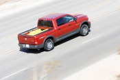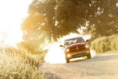 Our tester's top-dog engine and 3.92:1 axle ratio endowed it with the maximum possible tow rating for a Ram 1500: 9,100 pounds. They also helped the Ram record a dismal 12.7 miles per gallon during its stay in our office, against EPA estimates of 13 mpg city/18 highway and 15 mpg combined. Bear in mind, though, that the Ram spent some of its time with us hauling around 1,100 pounds of cargo — effortlessly, we might add. The usual caveat about our affinity for floored accelerators also applies.