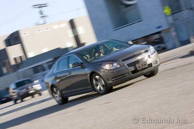 In panic braking from 60 mph, the 2009 Chevy Malibu Hybrid required 134 feet — unimpressive by midsize-sedan standards, but identical to the performance of the last Camry Hybrid we tested. Low-rolling-resistance tires and added weight from the battery pack are the likely culprits. Against EPA fuel economy ratings of 26 mpg city/34 highway and 29 combined, we averaged a disappointing 23 mpg, but lighter feet should produce considerably better results.
